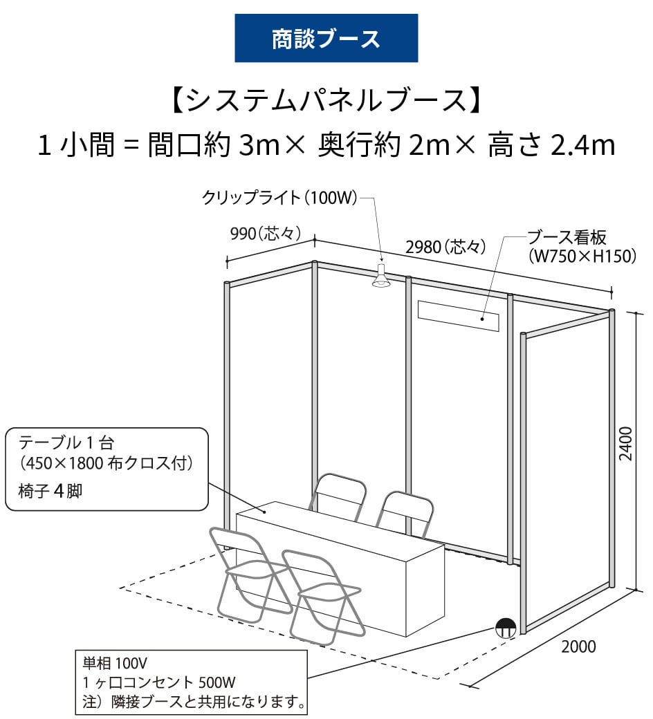 - 商談ブース(間口約3m×奥行約2m×高さ約2.4m):1小間税込22,000円