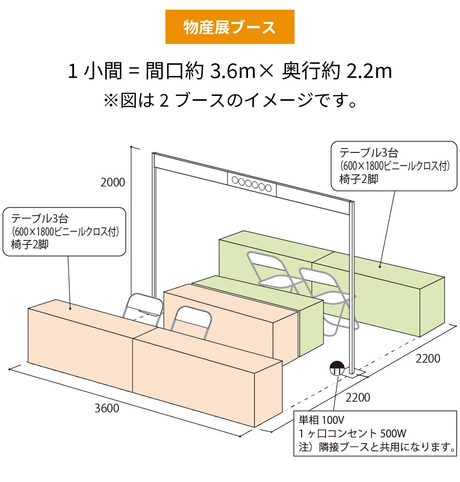 - 電気コンセント(100V500W):1ヶ口(隣接ブースと共用)